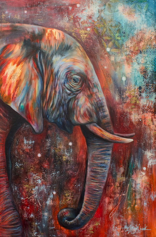 My style blends realism with abstraction. This means that I often hone in on one area of a subject with realistic details, letting the rest dissolve into abstract layers of color and texture. This combination of focus and freedom shapes each piece’s energy.