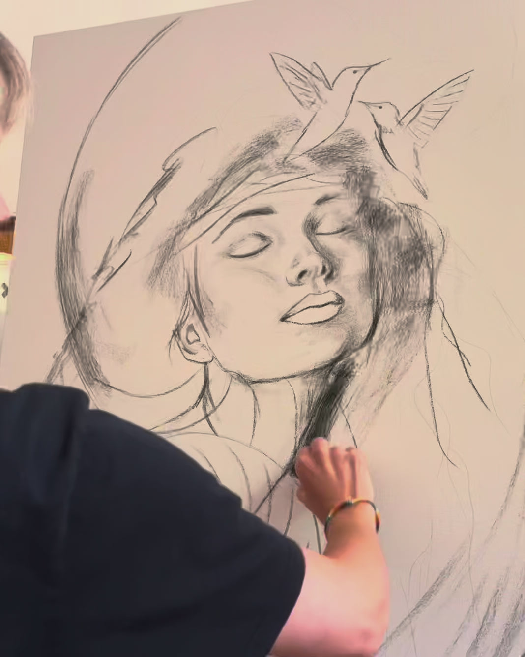 I usually first sketch the composition with charcoal and watersoluble graphite. There’s something raw and alive about this stage, the lines, the textures and the feeling of potential. Sometimes, the beginnings are so compelling that I've sold a piece before I even moved on to the painting stage.